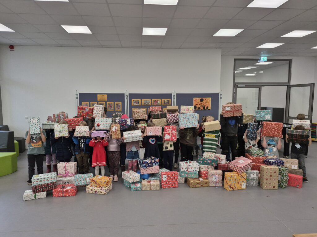 Am Freitag, 14.11.2025, haben 103 wunderbar verpackte Weihnachtspäckchen die OGS Schmitzhöhe verlassen. Nun sind sie auf der Reise in ländliche Gebiete in Osteuropa und sorgen dort hoffentlich für viel Freude. Ein großes DANKESCHÖN an alle, die unsere diesjährige Aktion unterstützt haben – so viele Päckchen haben wir noch nie gesammelt!!!